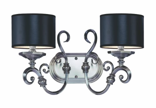Finish:Brushed Pewter, Light Bulb:(2)60w B10 Cand F Incand Mont La Ville Two-Light Bath Bar The clean, sophisticated elegance of modern European style comes to life with this familys soothing design. The finish has an antiqued look with subtle hints of burnished ebony, coordinating flawlessly with the hardback shades which are topped off with a satiny silver lining.