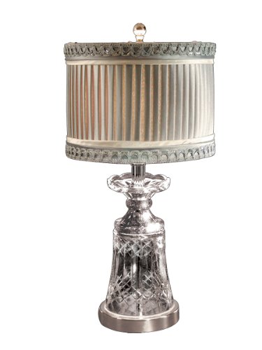 Dale Tiffany lamps are crafted with fine materials and an eye for details. This table lamp features classic lines executed in sparkling crystal. Brushed nickel finished stand and a fabulous slatted fabric drum shade complete this eye-catching look. Three-way socket provides more lighting control. Metal base. Brushed nickel finish. Crystal and acrylic body. Fabric drum shade. Takes one 100 watt 3-way bulb (not included). 21 1/2" high. Shade is 10 1/2" wide.