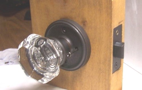 Handcrafted with the finest parts and engineered to be used for generations (email us for more details or order one returnable sample). The oversize 24% Lead Crystal Old Town Knob is securely connected to the self-connecting Rosette, Oil Rubbed Bronze Over Solid Brass. (also available with Brushed Nickel hardware on Amazon item) Each set is ready to install in modern pre-rilled doors right out of the box by home owners as well has contractors. So easy to install installation no complicated instructions are included Guaranteed to exceed your expectations are my be return for a full refund. Advanced engineering to fit modern doors with less parts to worriy about. (A) we ship your set assembled and tested. (B) Once the heavy duty tubular Latch set is installed(requires a 1" latch hole in door, there are only two parts left to install precision Spindle is connected to the knobs to fit this particular latch, eliminates wiggle and produces a feel of real quality. (C) The only instructions that are necessary is to install the Lock/Pin before the rosettes are completely tightened. The two over sized crystal knobs set in solid brass (do not require set screws) two hand forged Solid Brass Rosettes that connect to each other and all the matching screws needed to install a secondary double spring system is in each rosette. Each set includes all the hardware needed to install right out of the box, shipped tested and assembled. You may purchase additional Passage sets on Amazon Item. Assembled, packed and inspected with care in USA to assure that mounting hardware is included, shipped ASAP. Three Generations of experience allows us to offer features and service that may not be available by marketing firms who sell similar products: We include photographs of the actual products. Over the years we have made many improvements to assure that our products are superior cosmetically and enhanced engineering for easy installation with reduced future maintenance.
