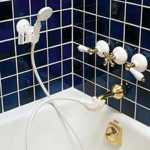 Economy Hand Held Shower HeadConvert a tub spout to a hand held shower. A suction-lock wall bracket quickly attaches the unit without screws or other hardware that would require permanent installation. Fits faucets with an outer diameter that measures 1-3/8" to 1-3/4" (3.5 to 4.4cm). Includes a spray head that can be held by the bracket during use. Bracket can be angled in two positions. The vinyl hose measures 5'' (1.5m). The universal adapter has a lip-lock collar that attaches only to tub faucets that do not have shower pull tabs. This is an hygiene product and cannot be returned. Product photo may not exactly match the product offered for sale. Please refer to the product description.